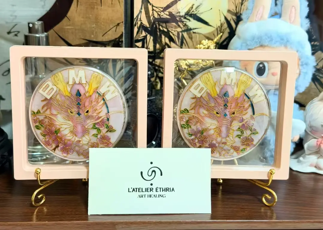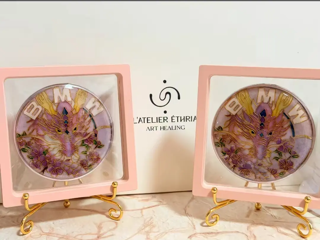 🐉 [Handcrafted] Custom BMW Sakura Pink Dragon Emblem – Enamel Cloisonné Art Badge – Fully Customizable DIY (1-Week Lead Time)
